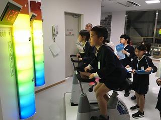 自転車をこいで、発電しました。