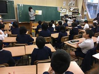 朝自習の時間(8時30分~45分)に読み聞かせがありました。