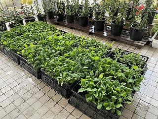 栽培委員と校長先生が、卒業式の会場を飾るサクラソウを育てています。