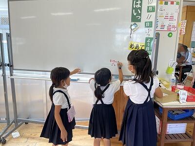 昼休み、連絡帳を見ていた先生の周りに子供たちがいました。
