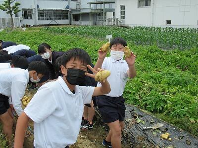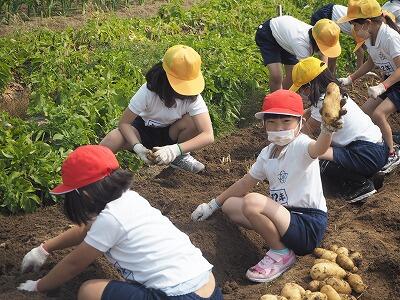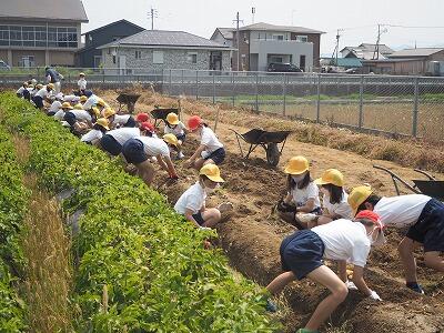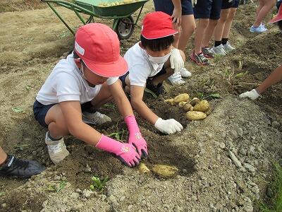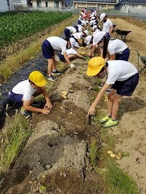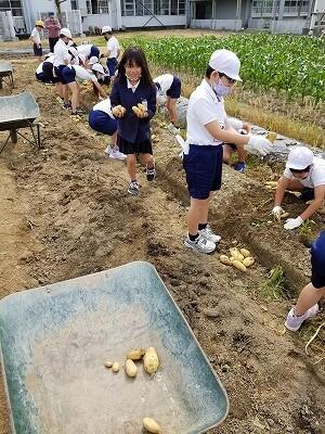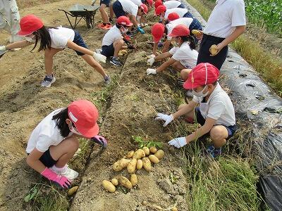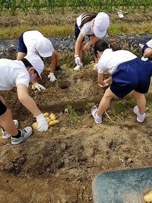 ★1年生から6年生まで、全学年でじゃがいもの収穫をします。