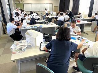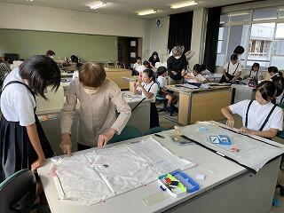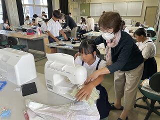 文政っ子応援協議会の方々に来ていただき、お手伝いをしてもらいました。基本的な裁縫の仕方やミシン縫いなど、手取り足取り教えていただきました。
