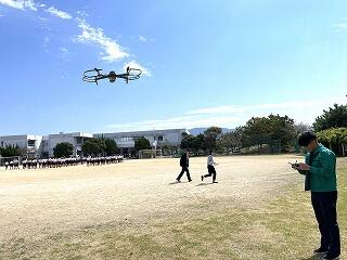 低い高度で飛び、子どもたちの周りを回って撮影されました。