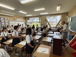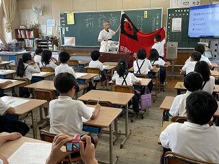 今日は、部落解放同盟八代市支部長の吉本洋一さんをゲストティチャーにお招きし、授業をしました。
