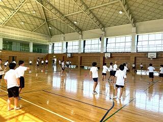 全員遊びので、1組が奥のコート、2組が手前のコートでドッジボールをしていました。