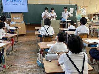 総合的な学習の時間、6年生に中学校生活について話をしてくれました。