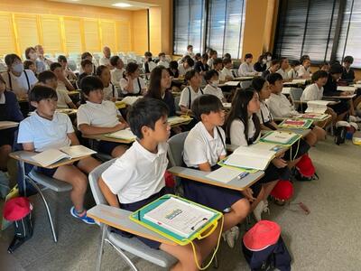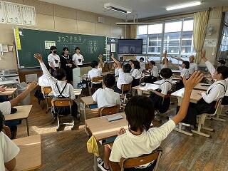 中学生が6年生の質問に、ていねいに答えてくれました。