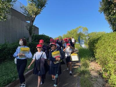 5,6校時、総合的な学習の時間に、校区の安全マップ作りをしました。「地図作りを通して、自分のふるさとをより理解すること」がねらいの授業です。