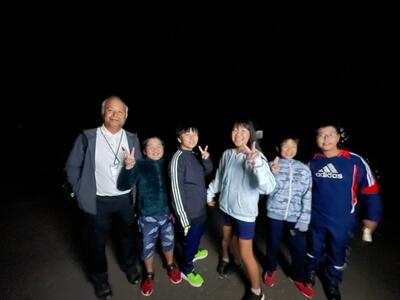 運動場に「150」という文字を書き、学年に分かれて人文字を作りました。