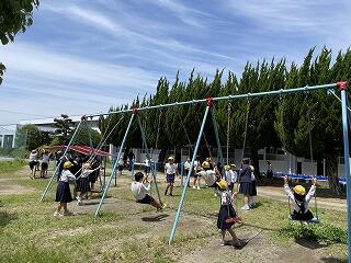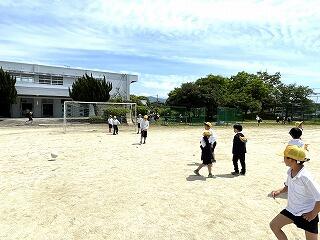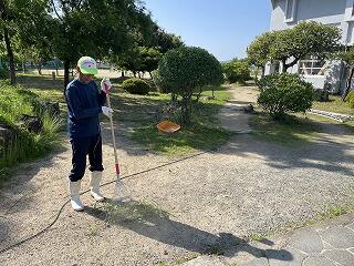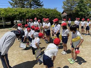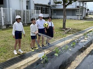 遊びに行く前、栽培委員さんが水やりをしていました。