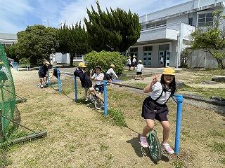 にっこり明日は、2,3,5年生がスポーツテストをします。