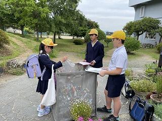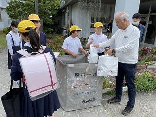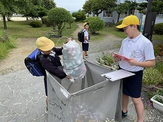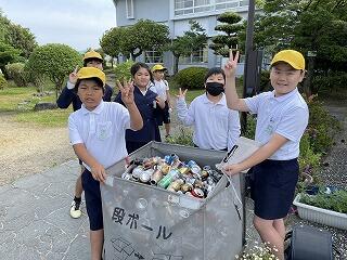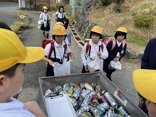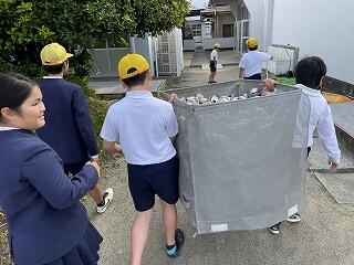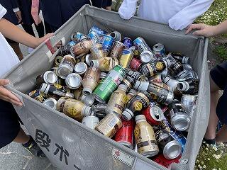 環境委員会の取り組みで、毎週水曜日にアルミ缶を集めています。
