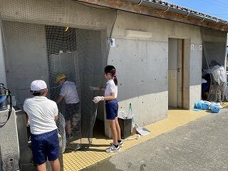 体育館トイレ、外トイレ、学校周りもきれいにしました。
