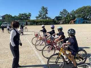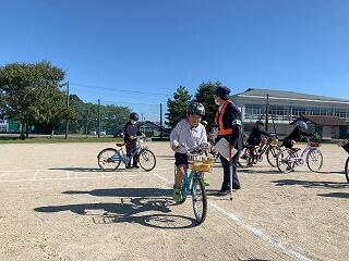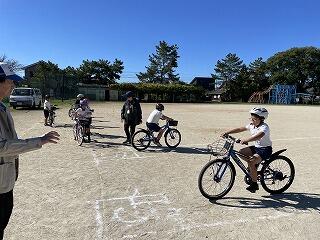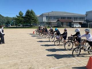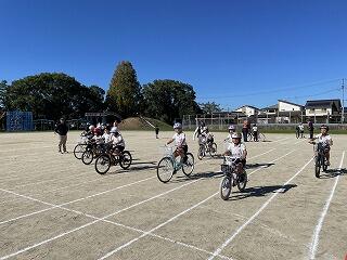 2時間目に3年1組、3時間目に3年2組が交通安全教室に参加して、交通ルールの理解と、運転技能を磨きました。