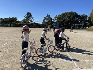 ハンドルの握り方、安全確認の顔の動き、ペダルの使い方など、自転車に乗らないで実践しました。