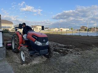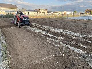 昨日は畑を耕してもらい、今日はマルチを張ってもらいました。