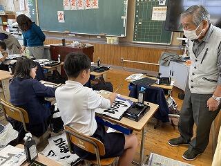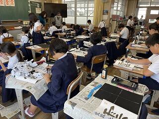 2,3時間目、文政っ子応援協議会の福原先生、外浦先生が来校され、習字の指導をしてくださいました。