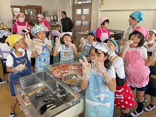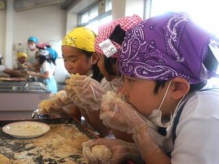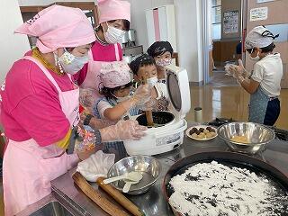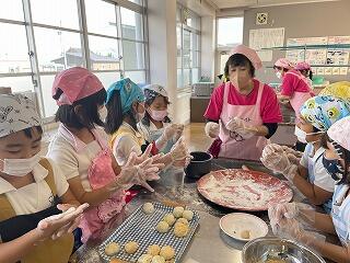 5時間目、生活科の時間に2年生が「おいも大福」をつくりました。