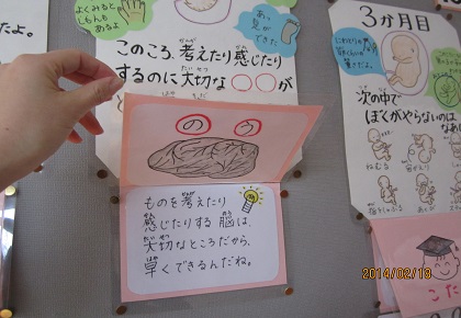 赤ちゃんがおなかの中で育っていくようすは、みんな興味津々のようで、よく立ち止まってみてくれています。