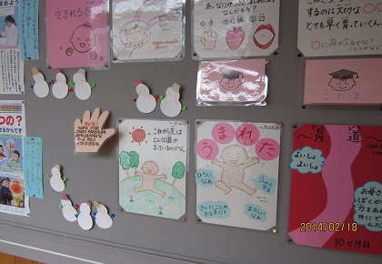 そこで、保健室の掲示板も「ぼく・わたしのうまれる旅」にしました。