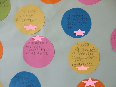 6年生一人一人に「わたしの健康法」を在校生へのメッセージとして書いてもらいました。