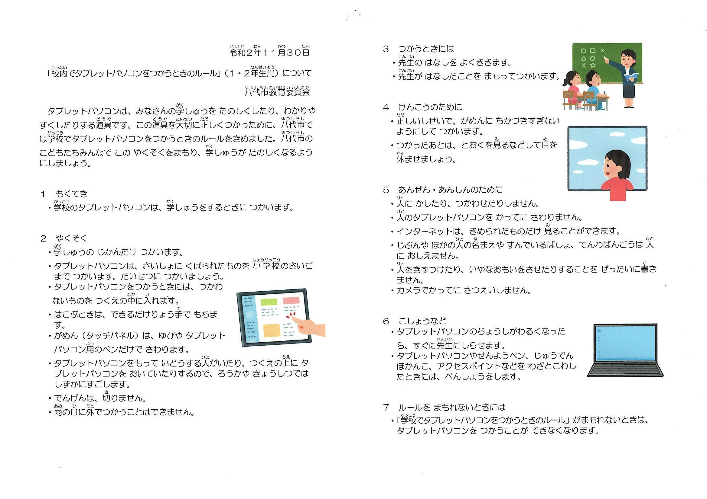 にっこり(小)1,2年 タブレットパソコンをつかうときのルール(学校用).pdf