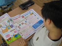 テキスト「お金のちしき」を使って、お金の歴史や役割などのお話をしていただきました。