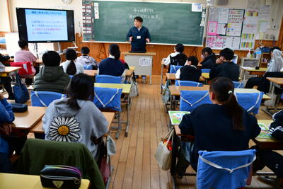 6年生の保健の授業に、阿蘇保健所衛生環境課から腰野さんをお迎えして、「命や健康を守る 薬物乱用教室」を実施しました。