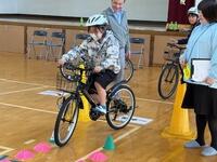 乗り慣れていない児童は、自転車を押しながら体験しました