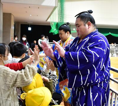子どもたちは、大きな体を間近に見られたり、ハイタッチをしていただいたり、大喜びでした!