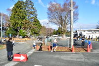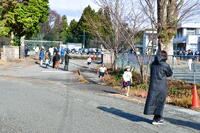 日頃から活動している縦割り班で、バトンをつないで学校周辺の周回コースを走ります。