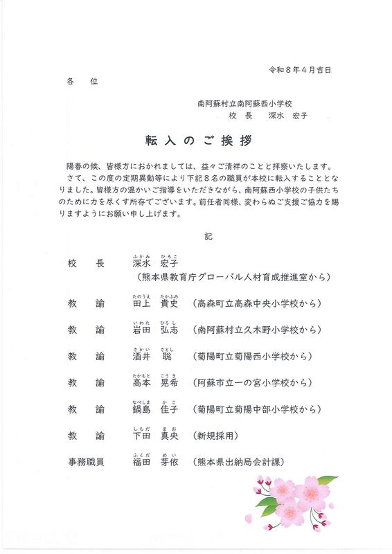 今年度、南阿蘇西小学校に新たに8名の職員が転入しました。