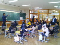 3年生:担任のT先生が一人一人の名前を点呼します みんな「はい!」と元気に笑顔で返事ができました