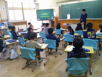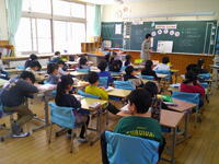 2年生:人の話をしずかに聞ける人は、心やさしい人ですね 担任のE先生からのお話をしっかり聞いていました