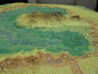 子どもたちは、山が高いことや平野が平らであることを、地図を触りながら実感していました。