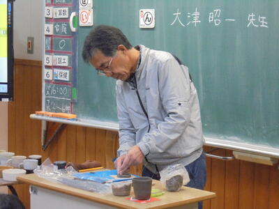 今日は、南阿蘇村で教育委員をされている大津昭一さんをゲストティーチャーとして招き、「マグカップづくり」を教えていただきました。
