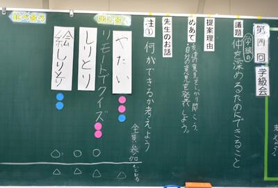 内容は、「学級の仲を深めるためにできることを考えよう」について、話合い活動をしました。