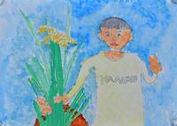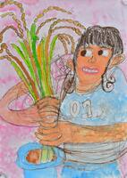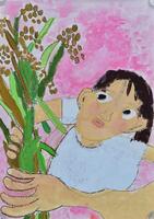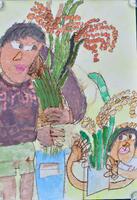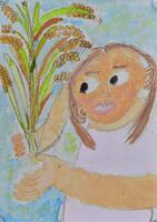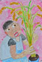 JA青壮年部のみなさんのご協力で取り組んだ「バケツ稲」を3年生が絵に描きました。