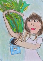 「花いっぱいになぁれ!」と丁寧に水かけをしました。