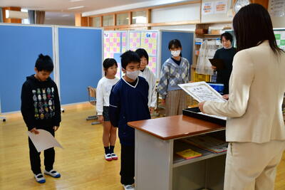 ゲームの後に、中北小学校の子どもたちからプレゼントが渡されました。