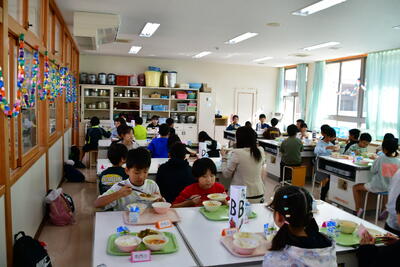 子どもたちは、5年生のお兄ちゃん、お姉ちゃんに引率されて内科・歯科・視力・聴力の健康診断を受けました。