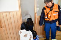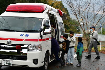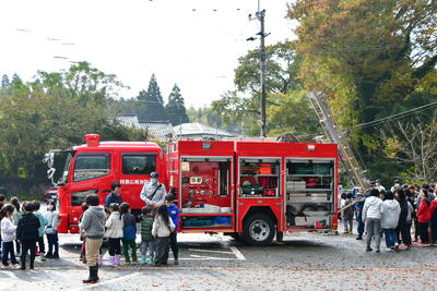 体育館への避難だったため、消火訓練はありませんでしたが、消防車や救急車の見学と煙体験をさせていただきました。