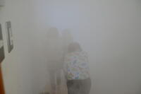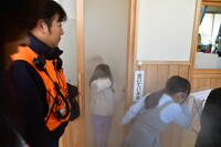 煙体験では、煙で真っ白になった部屋に入り、前が見えない中を歩いてみました。