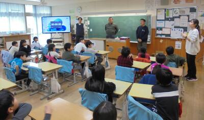 11月6日に上天草市の中北小学校から来ていただいたので、今回は、本校から4年生が上天草市を訪問しました。