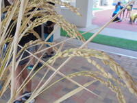 カマの使い方を教えていただき、自分の稲を刈りました。
