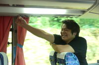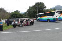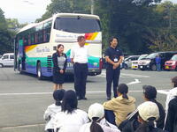 2日間お世話になるセフティー観光の山永さんと南阿蘇観光の乗務員さんとガイドさんです。