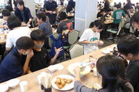講話の後は、平和祈念像の前で写真撮影をしてから、お待ちかねの昼食です。