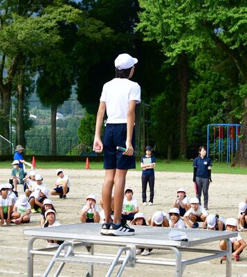 を目標に、2学期の運動会や学習発表会、マラソンリレー大会などの学校行事に取り組みましょう!」と話されました。