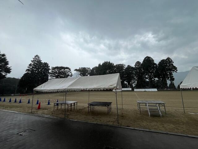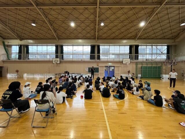 朝までの雨の影響で、体育館へ避難することになりましたが、子どもたちは真剣に訓練しました。