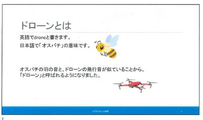 始めにドローンの基本構造と飛行原理を学習した後、プログラミングの基本操作を教えていただきました。